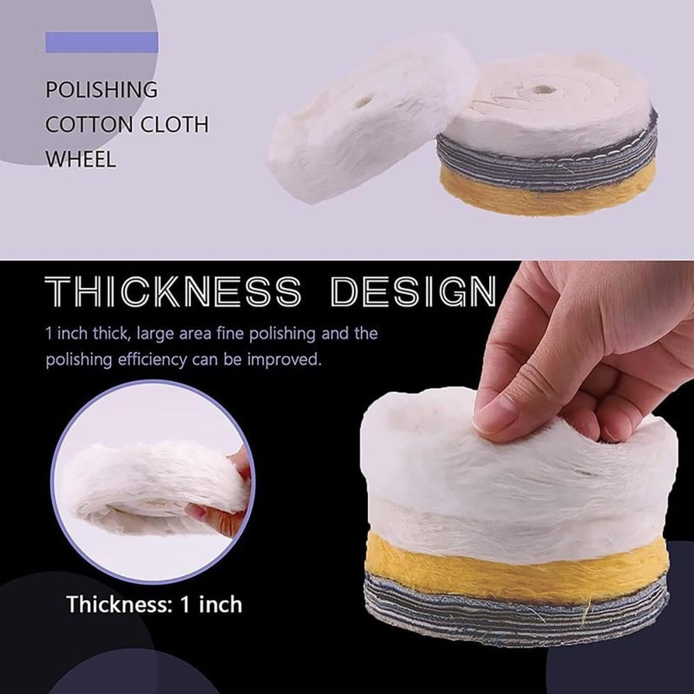 【مجموعة عجلات تلميع من 8 قطع】تتضمن العبوة قطعة واحدة من عجلة القطن الأبيض (50 طبقة) / عجلة قطنية صفراء (36 طبقة) / عجلة فلانيل واحدة (30 طبقة) / عجلة واحدة من قماش الدينيم ؛ قطعة واحدة بلون أخضر روج/ قطعة واحدة بيضاء روج/ قطعة واحدة بلون بني روج؛ 1 قطعة ساق 1/4 انش. يمكن أن تلبي الموديلات والألوان المختلفة جميع احتياجاتك في وقت واحد.